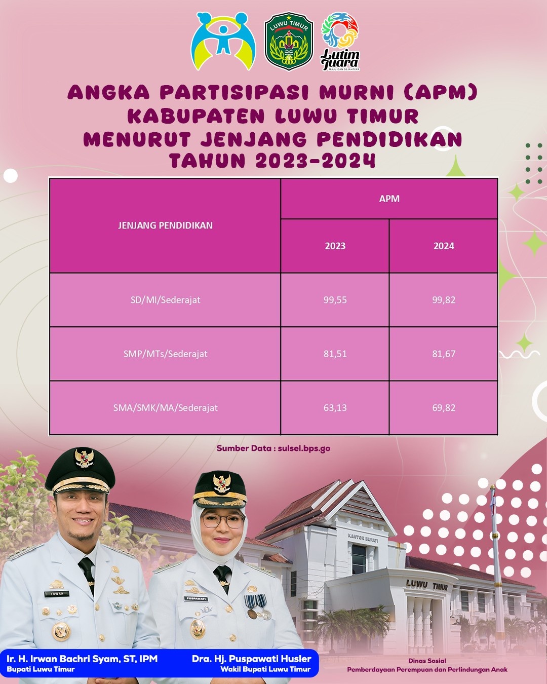 ANGKA PARTISIPASI MURNI (APM) DI KABUPATEN LUWU TIMUR MENURUT JENJANG PENDIDIKAN TAHUN 2023 & 2024