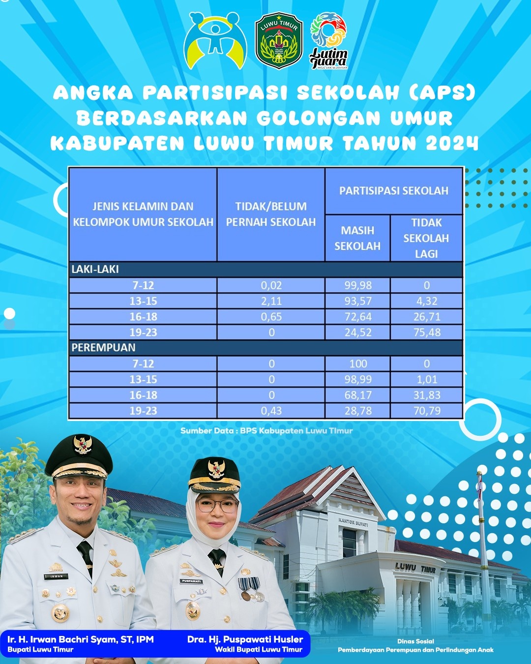 ANGKA PARTISIPASI SEKOLAH (APS) BERDASARKAN GOLONGAN UMUR DI KABUPATEN LUWU TIMUR TAHUN 2024